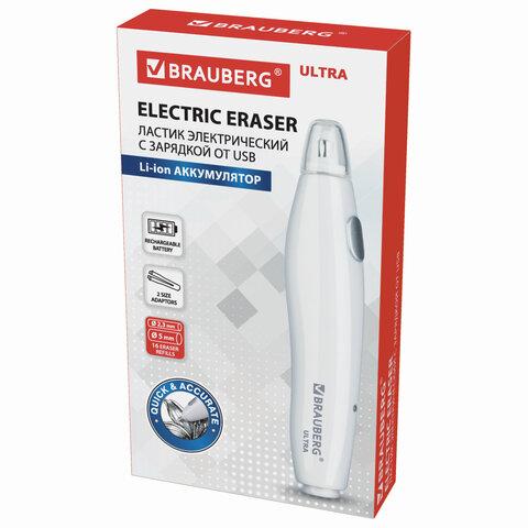 Ластик электрический BRAUBERG "ULTRA", АККУМУЛЯТОР, зарядка USB, + 16 сменных ластиков, 229609