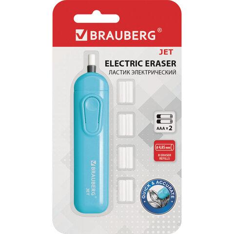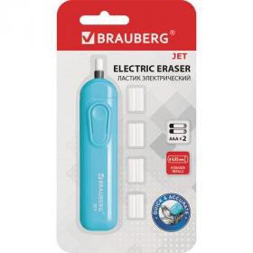 Ластик электрический BRAUBERG "JET", питание от 2 батареек ААА, 8 сменных ластиков, голубой, 229612