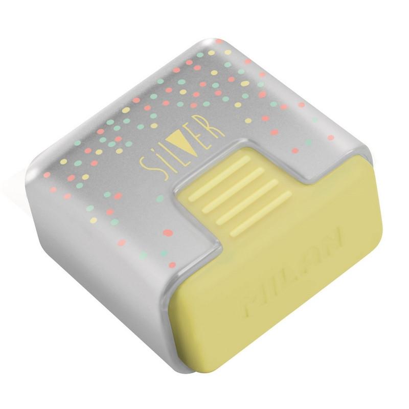 Ластик-точилка Milan CAPSULE SILVER+2 зап.ластика, цв в асс, блистBYM10356