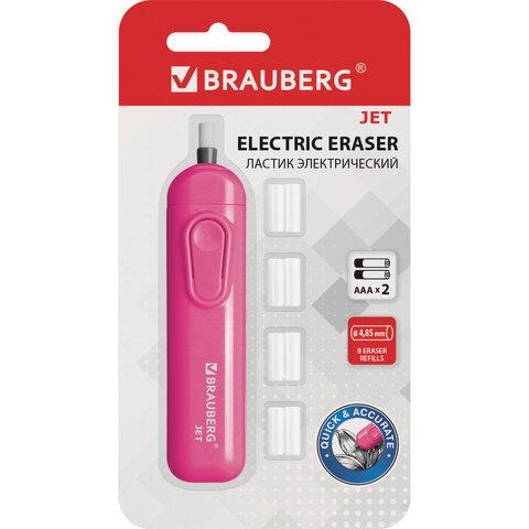 Ластик электрический BRAUBERG "JET", питание от 2 батареек ААА, 8 сменных ластиков, розовый, 229617