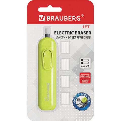 Ластик электрический BRAUBERG JET, питание от 2 батареек ААА, 8 сменных ластиков, салатовый, 229615