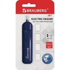 Ластик электрический BRAUBERG "JET", питание от 2 батареек ААА, 8 сменных ластиков, синий, 229616