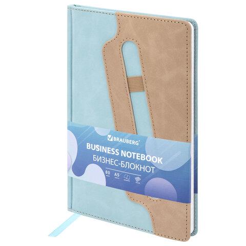 Блокнот А5 148x218 мм BRAUBERG "Assistant", под кожу, 80 листов, держатель, клетка, голубой, 118629