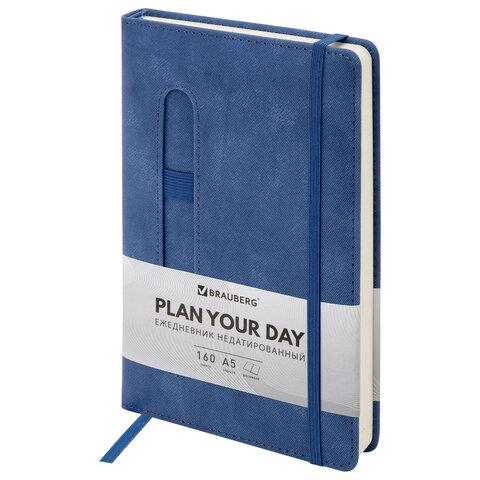 Ежедневник недатированный А5 148x218 мм, BRAUBERG "Inspiration", под кожу, застежка, цветной срез, 160 листов, синий, 118649