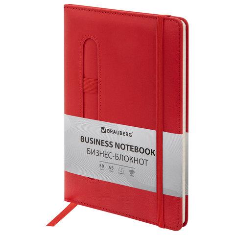 Блокнот А5 148x218 мм BRAUBERG "Optimal", под кожу, 80 листов, резинка, держатель для ручки, клетка, красный, 118635