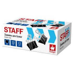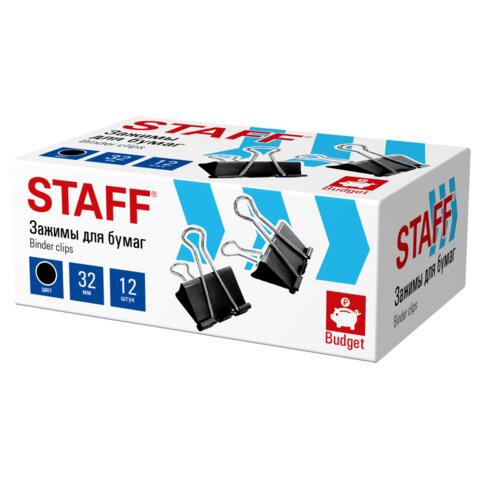 Зажимы для бумаг STAFF ECO, КОМПЛЕКТ 12 шт, 32 мм, на 140 листов, черные, картонная коробка, 274033