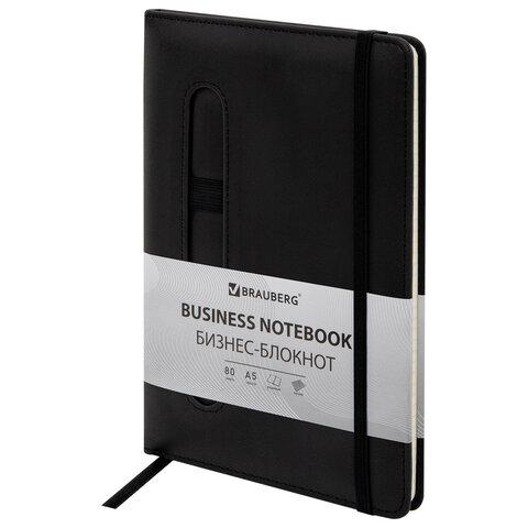 Блокнот А5 148x218 мм BRAUBERG "Assistant", под кожу, 80 листов, держатель, клетка, черный, 118630