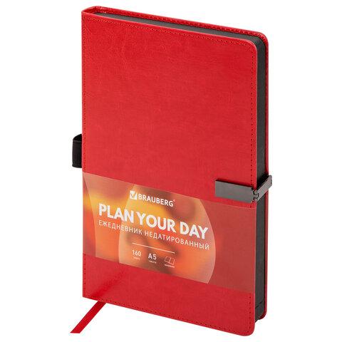 Ежедневник недатированный А5 148x218 мм, BRAUBERG "Inspiration", под кожу, застежка, цветной срез, 160 листов, красный, 118650