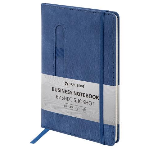 Блокнот А5 148x218 мм BRAUBERG "Optimal", под кожу, 80 листов, резинка, держатель для ручки, клетка, синий, 118633