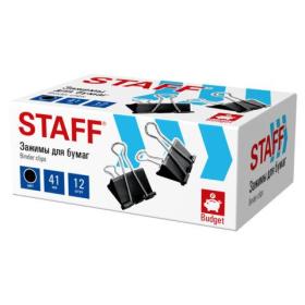 Зажимы для бумаг STAFF ECO, КОМПЛЕКТ 12 шт, 41 мм, 200 листов, черные, картонная коробка, 274034