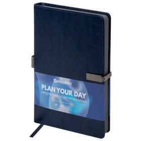 Ежедневник недатированный А5 148x218 мм BRAUBERG "Optimal", под кожу, резинка, держатель для ручки, синий, 118639