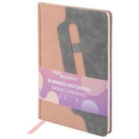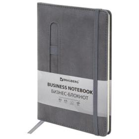 Блокнот А5 148x218 мм BRAUBERG "Assistant", под кожу, 80 листов, держатель, клетка, серый, 118632