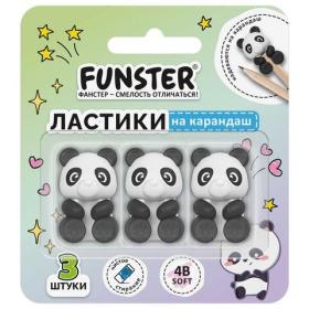 Ластик-топпер для карандаша FUNSTER (ФАНСТЕР) "ПАНДЫ", НАБОР 3 ШТУКИ, блистер, 274012