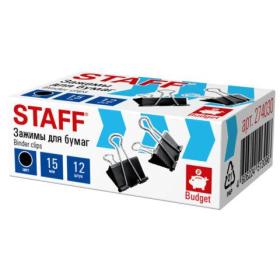 Зажимы для бумаг STAFF ECO, КОМПЛЕКТ 12 шт, 15 мм, на 45 листов, черные, картонная коробка, 274030