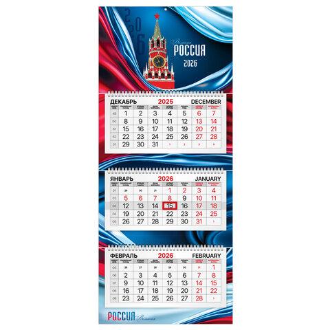 Календарь квартальный 2026 г., 3 блока, 3 гребня, бегунок, мелованная бумага, BRAUBERG PREMIUM, "Россия", 116828
