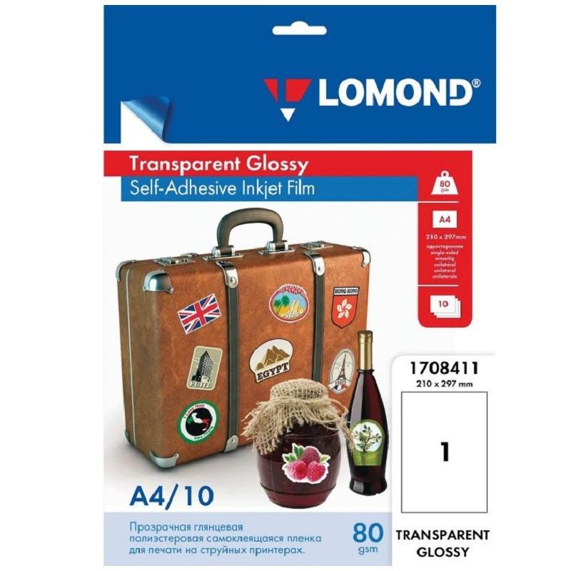 1708411 Пленка Lomond cамоклеящаяся прозрачная неделенная А4 10 листов для струйной печати.