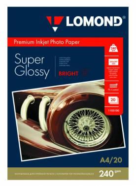 1105100 Фотобумага LOMOND Одностороняя Супер Глянцевая 240г / м2 A4(210X29) / 20л. для струйной печати.
