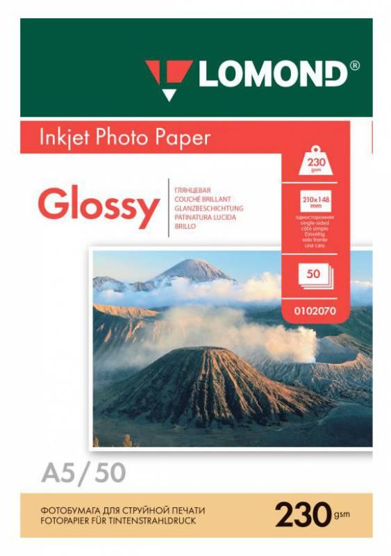 Фотобумага Lomond 0102070 A5 / 230г / м2 / 50л. / белый глянцевое для струйной печати