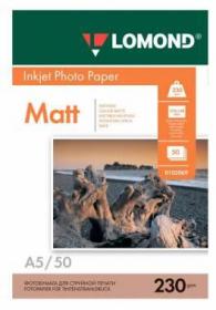 0102069 Фотобумага LOMOND Одностороняя Матовая 230г / м2 A5(21x15) / 50л.