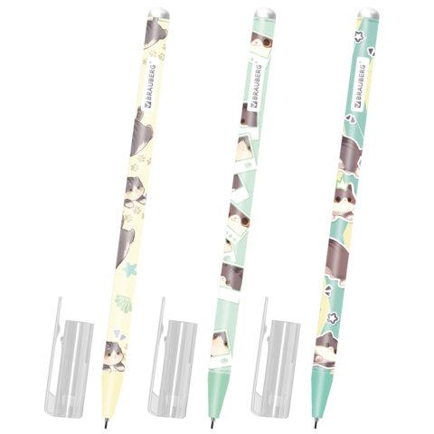 Ручка стираемая гелевая, кросс-серия "МИЛЫЕ КОТЫ", BRAUBERG, СИНЯЯ, корпус ассорти, игольчатый наконечник 0,5 мм, линия 0,35 мм, 144481