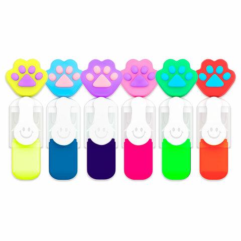 Набор текстовыделителей с топперами 6 ЦВЕТОВ НЕОН, "ЛАПКИ", линия 1-4 мм, FUNSTER (ФАНСТЕР), 152645