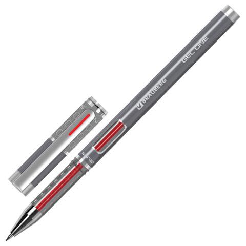 Ручка гелевая BRAUBERG "GEL ONE", КРАСНАЯ, стандартный узел 0,5 мм, линия письма 0,35 мм, 144038