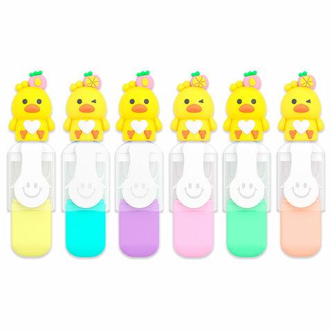 Набор текстовыделителей с топперами 6 ЦВЕТОВ ПАСТЕЛЬ, "КРУТЫЕ УТЯТА", линия 1-4 мм, FUNSTER (ФАНСТЕР), 152652
