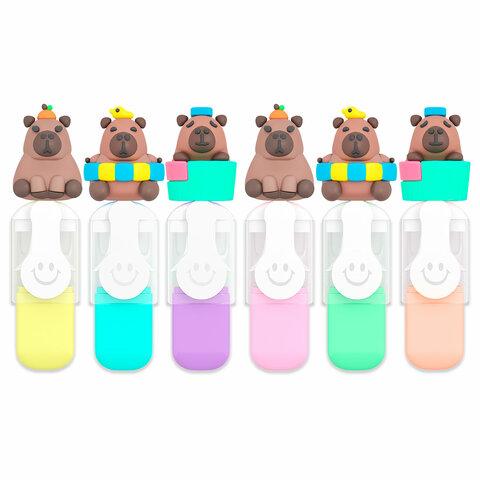 Набор текстовыделителей с топперами 6 ЦВЕТОВ ПАСТЕЛЬ, "КАПИБАРЫ", линия 1-4 мм, FUNSTER (ФАНСТЕР), 152651