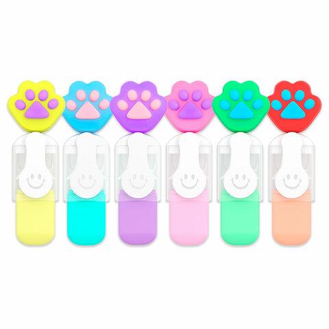 Набор текстовыделителей с топперами 6 ЦВЕТОВ ПАСТЕЛЬ, "ЛАПКИ", линия 1-4 мм, FUNSTER (ФАНСТЕР), 152650