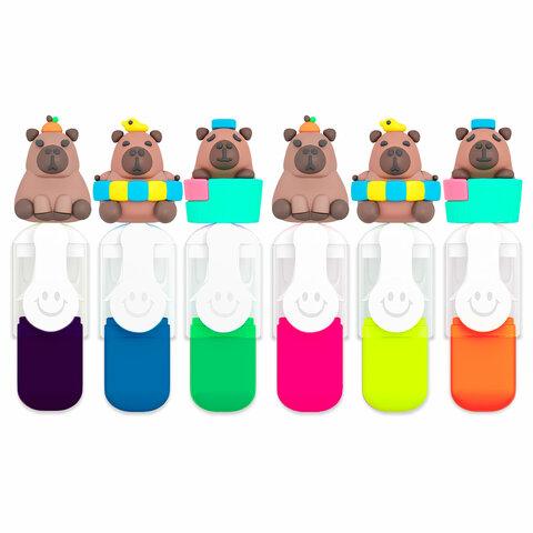 Набор текстовыделителей с топперами 6 ЦВЕТОВ НЕОН, "КАПИБАРЫ", линия 1-4 мм, FUNSTER (ФАНСТЕР), 152646