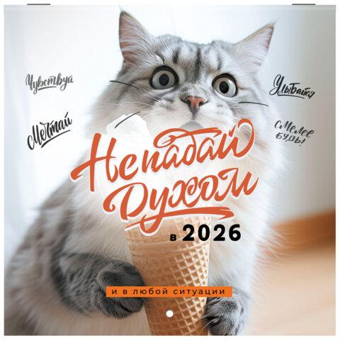 Календарь настенный перекидной 2026 г., BRAUBERG, 12 листов, 21,4х21,4 см, МИНИ, "Не падай духом", 116942