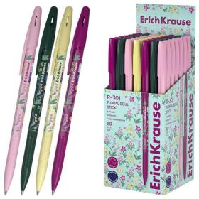 Ручка шариковая ERICH KRAUSE "R-301 Stick Floral" СИНЯЯ, синяя, корпус ассорти, линия 0,35 мм, 63077