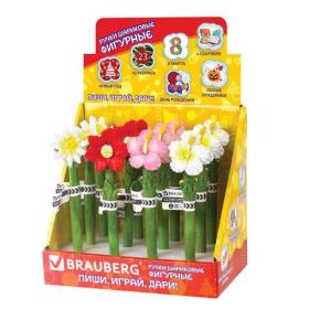 Ручка фигурная "ЦВЕТОЧКИ", СИНЯЯ, 4 дизайна ассорти, линия письма 0,5 мм, дисплей, BRAUBERG, 142775