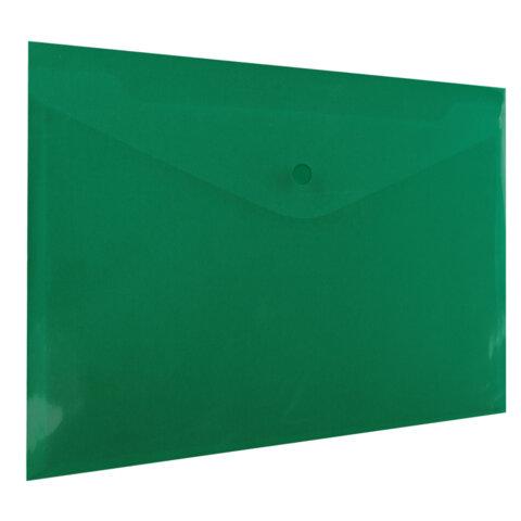 Папка-конверт с кнопкой прозрачная А4 BRAUBERG UNIVERSAL, до 100 листов, зеленая, 0,15 мм, 273074
