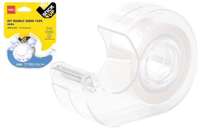 Клейкая лента двухсторонняя двусторонняя Deli EA694 прозрачная шир.18мм дл.6м на диспенсере