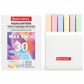 Набор текстовыделителей 30 ЦВЕТОВ BRAUBERG "SUPER MIX", линия 1-5 мм, мягкий скошенный наконечник, 152539