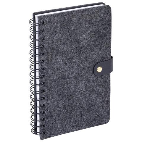 Ежедневник недатированный, А5, 135х210 мм, BRAUBERG "Felt", на гребне, войлок, застежка на кнопке, 160 л., серый, 117133
