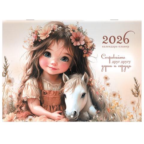 Календарь-планер настенный перекидной на 2026 г., BRAUBERG, 12 листов, 29,5х21,3 см, "Sweet pony", 116948
