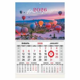 Календарь квартальный 2026 г., 1 блок, 1 гребень, магнитный курсор, мелованная бумага, BRAUBERG, "Каппадокия", 116917