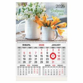 Календарь квартальный 2026 г., 1 блок, 1 гребень, магнитный курсор, мелованная бумага, BRAUBERG, "Люпины", 116915