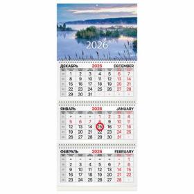 Календарь квартальный 2026 г., 1 блок, 1 гребень, магнитный курсор, мелованная бумага, BRAUBERG, "Озеро", 116916