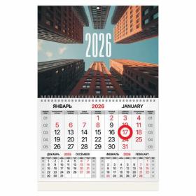 Календарь квартальный 2026 г., 1 блок, 1 гребень, магнитный курсор, мелованная бумага, BRAUBERG, "Мегаполис", 116918