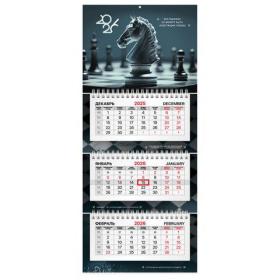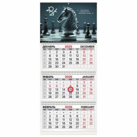 Календарь квартальный 2026 г., 3 блока, 3 гребня, магнитный курсор, мелованная бумага, BRAUBERG, "Ход конем", 116908
