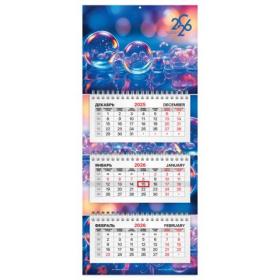 Календарь квартальный 2026 г., 3 блока, 3 гребня, магнитный курсор, мелованная бумага, BRAUBERG, "Символика", 116910