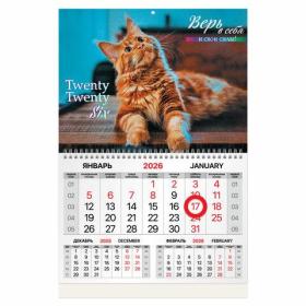 Календарь квартальный 2026 г., 1 блок, 1 гребень, магнитный курсор, мелованная бумага, BRAUBERG, "Котик", 116923