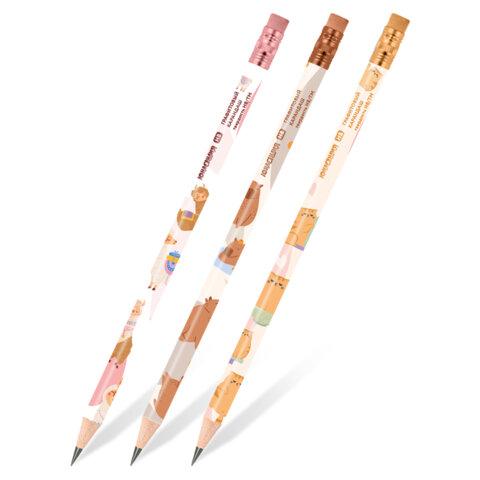Набор карандашей чернографитных с принтом ЮНЛАНДИЯ "FAT ANIMALS", 12 штук, HB, с ластиком, корпус ассорти, 182035