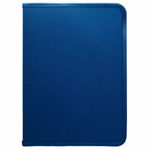 Папка объемная на молнии пластиковая на 4 кольцах, 35 мм, А4, BRAUBERG PIXEL, темно-синяя, 0,7 мм, 273080