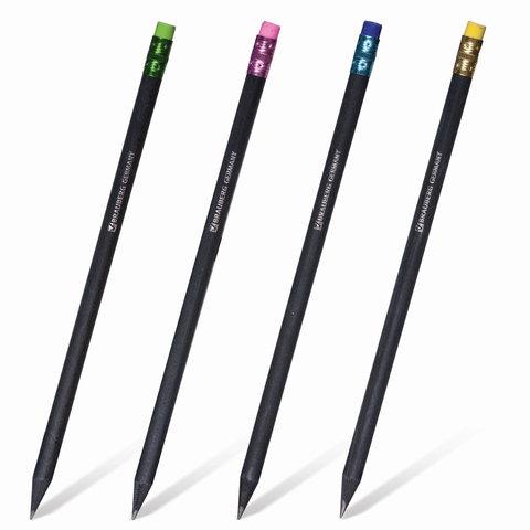 Карандаш чернографитный BRAUBERG, 1 шт., "Black Wood", НВ, с ластиком ассорти, черное дерево, заточенный, 180629