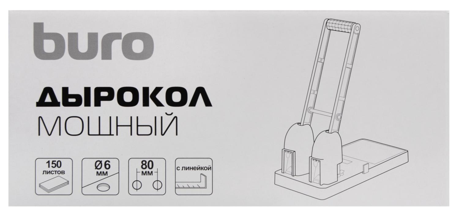 Дырокол Buro Force макс.:150лист. пластик черный отв.:2 с линейкой