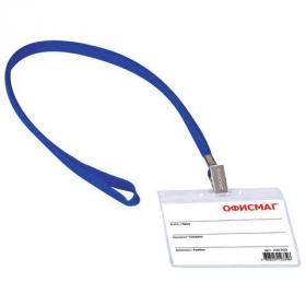 Бейдж горизонтальный (60х90 мм), на синей ленте 45 см, ОФИСМАГ, 235703